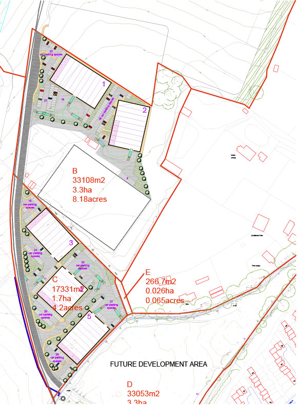 We worked closely with all parties to arrive at an agreeable proposal that would allow future phased development of he commercial/industrial units without the need for revisiting completed work or digging up roads through the housing estate after it was completed. The proposals also allowed for maximum use of available space on the site.