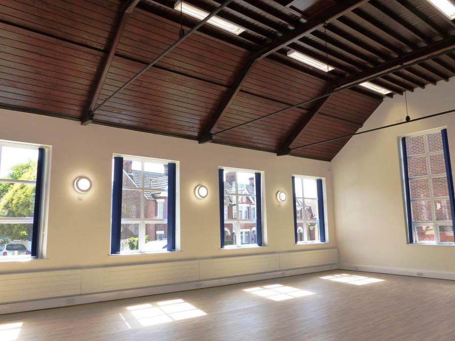 Refurbishment and extension of church hall facility to create 450m2 of space for community group lettings. It comprises three large meeting spaces and a large hall with commercial grade kitchen and ancillary spaces.
