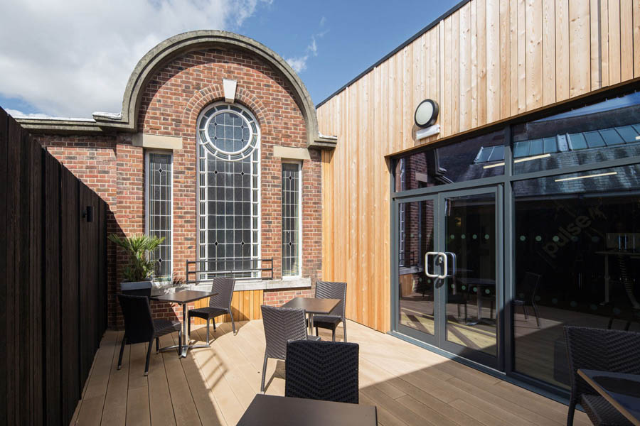 1,0756m2 of additional gym space built on the roof of the existing gym and tied into the Grade 2 Listed main building with services designed to reflect the corporate identity of BH Live who operate the building.